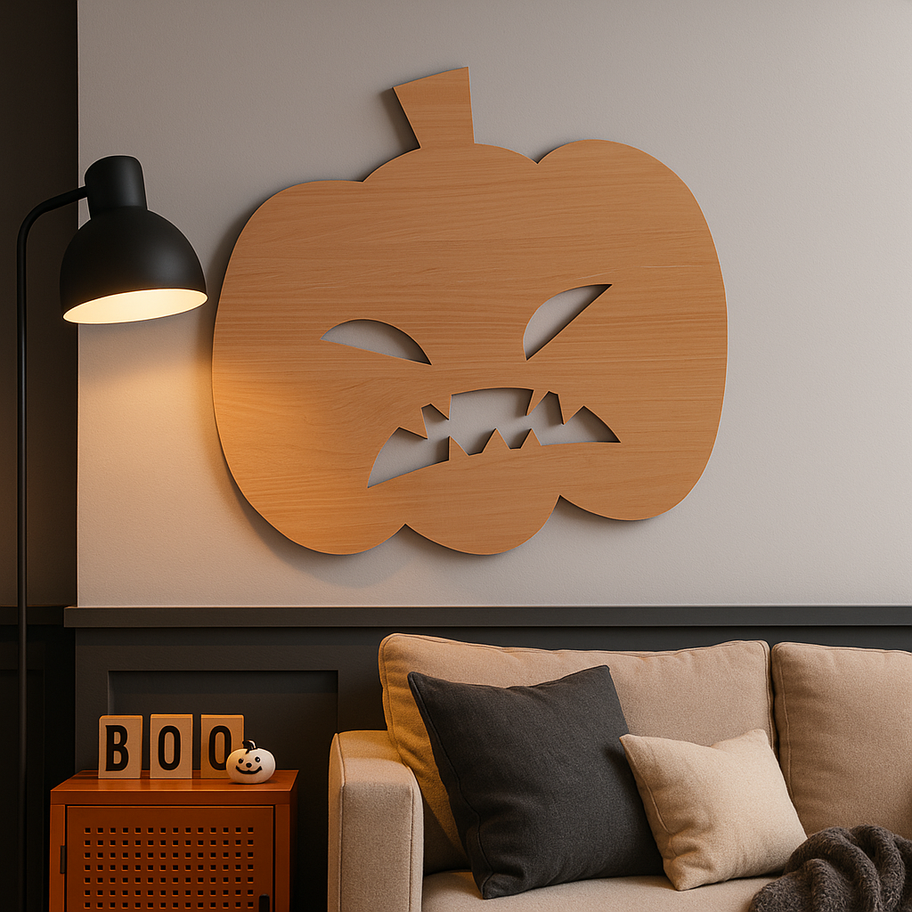 Pripravte sa na strašidelnú, no zároveň štýlovú Halloweensku atmosféru s touto drevenou nástennou dekoráciou. Zobrazuje štylizovanú tekvicu s tradičnými vyrezanými otvormi pre oči, nos a ústa, ktoré tvoria klasickú desivú tekvicovú tvár. Celá dekorácia je precízne vyrezaná laserom z vysokokvalitnej HDF dosky, čo jej dodáva rustikálny a zároveň moderný vzhľad. Je ideálnym doplnkom na výzdobu vášho domova počas Halloweenu, či už do predsiene, obývacej izby alebo na akékoľvek miesto, kde chcete vytvoriť sviatočnú, no elegantnú strašidelnú náladu.